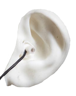 BACCH-Stratos relies on a calibration sequence of seven guided binaural acoustic measurements, which take approximately five minutes to complete. These measurements are performed using Theoretica’s BACCH-BM in-ear microphone, a scientific-grade, individually calibrated device with an ultra-linear frequency response, worn by the listener seated in front of two reference loudspeakers.